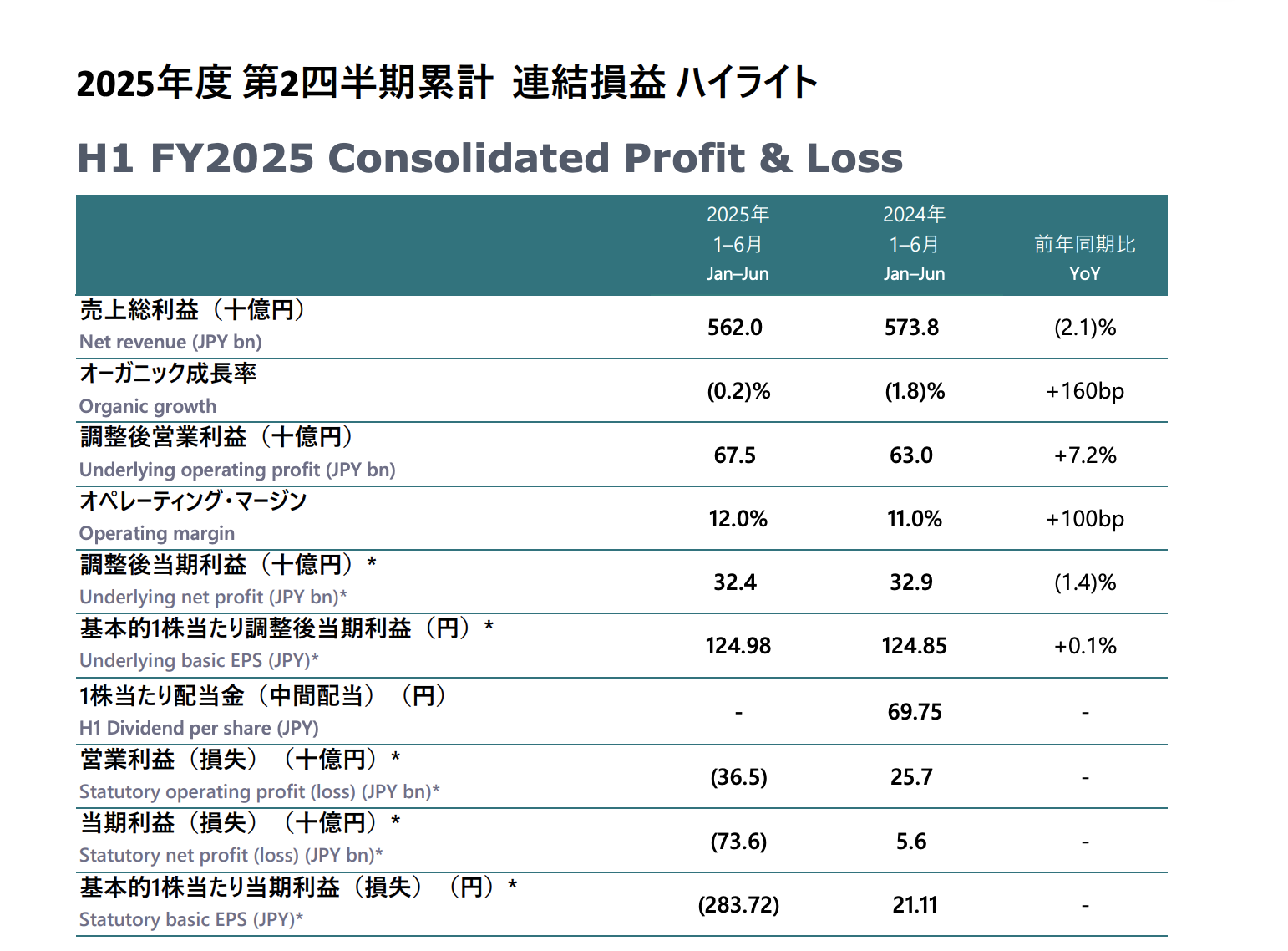 - Group net revenue: ¥562.0 billion (Year-on-year growth: -2.1)